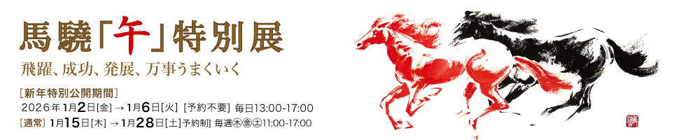 『馬驍「午」特別展』を開催しております。馬驍先生ならではの卓越な筆致と潑墨表現による「馬」の世界を、