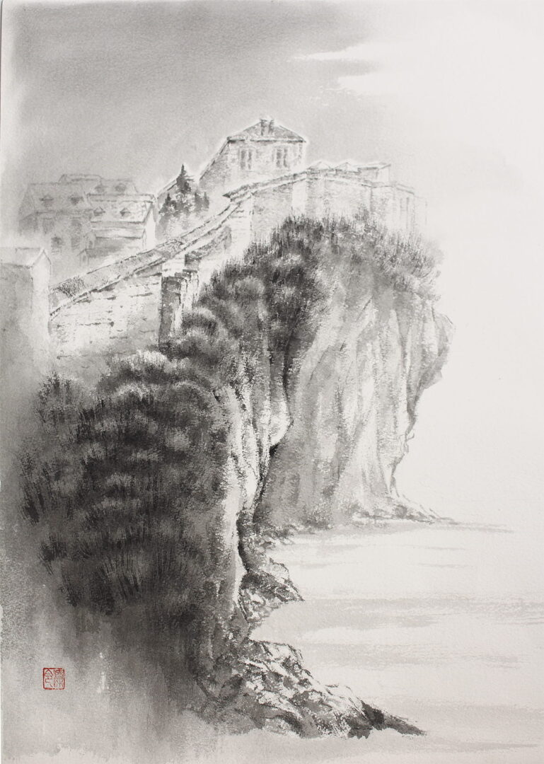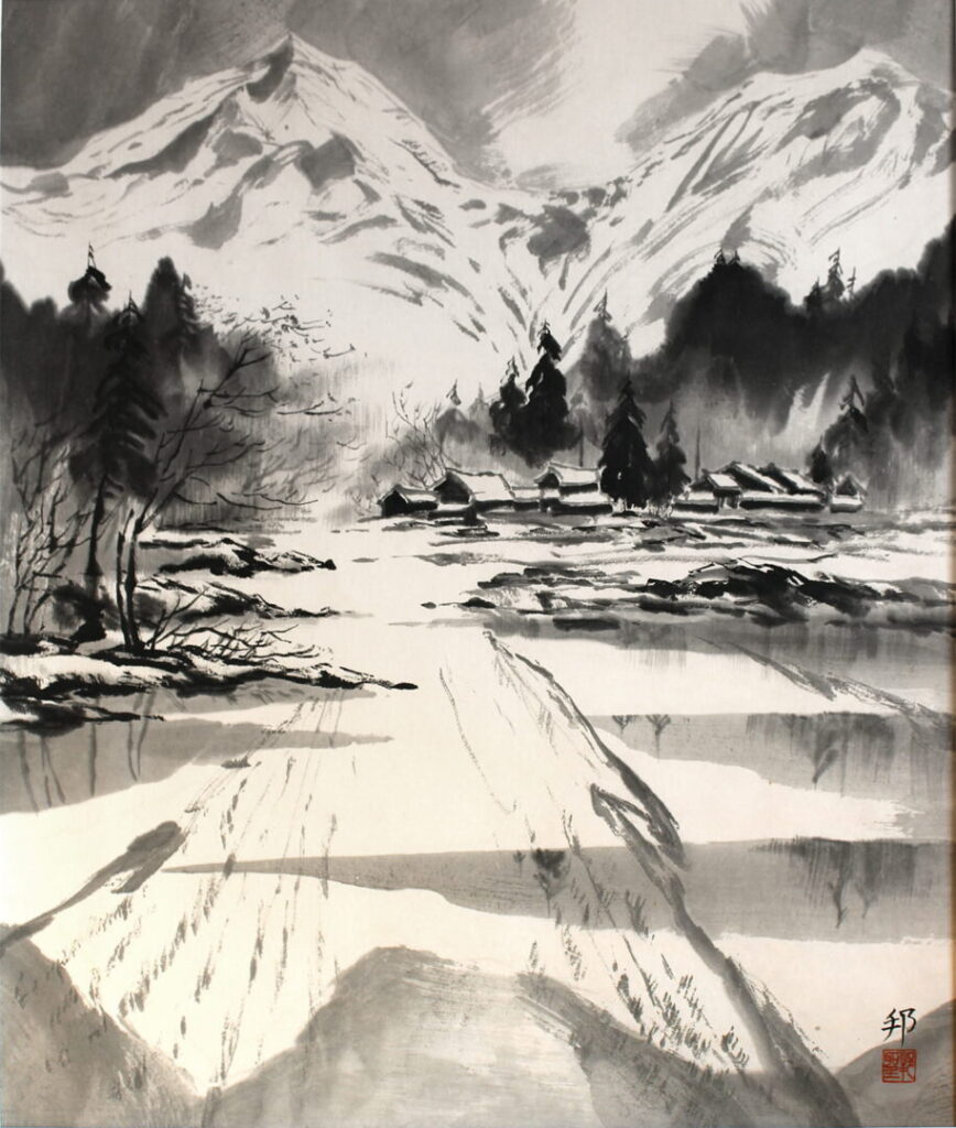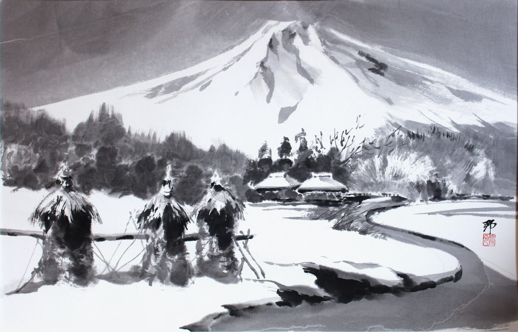 水墨画を始めたきっかけはNHK学園オープンスクールで「山水画」(初心者のみ)という講座があり、その(初心者のみ)という文字に引かれて受講したのが始まりです。