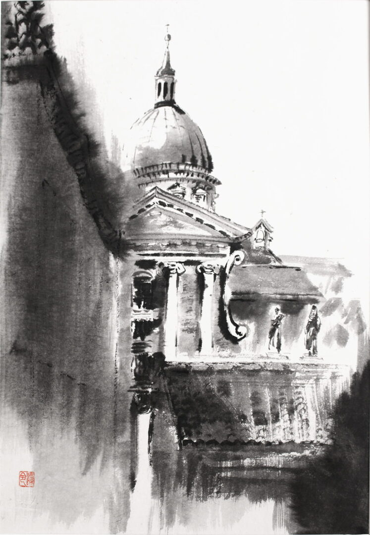 しかし2年経過した頃、講師の先生が渡米してしまい、「さて、この先どうしたものか?」というとき、たまたま台湾出身の先生の作品展にフラリと入り「水墨画の先生をさがしているのだったら」と紹介して戴いたのが大塚の「馬きょう水墨画展示館」の水墨画教室でした。