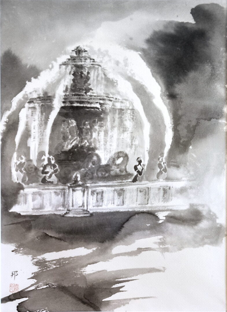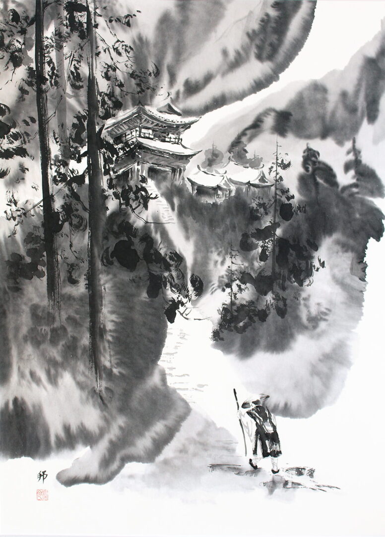 すると私の思っていた水墨画とは違う多様な表現で大胆さと繊細さを合わせた表現でした。「墨と水だけでこういう表現ができるんだ」ということに驚かされ画のなかに引き込まれました。