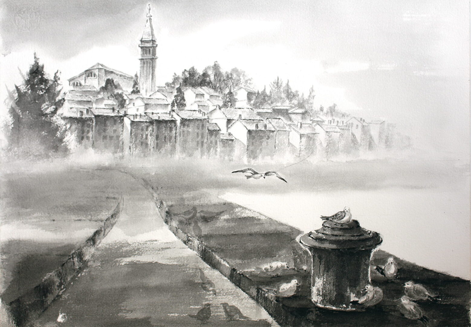 馬驍先生からは常々「写真のような絵は描くな」と。画のなかに物語性、大気や雲や霧の動き、余白の意味を考えて描くようにと。そして再現ではなく表現する事を考える事。実際に画を描くときには
