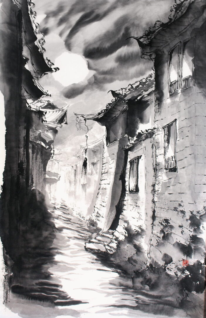 ★「現代墨の作家展」出品 「朝光さす四方街」「麗江月下」2008年