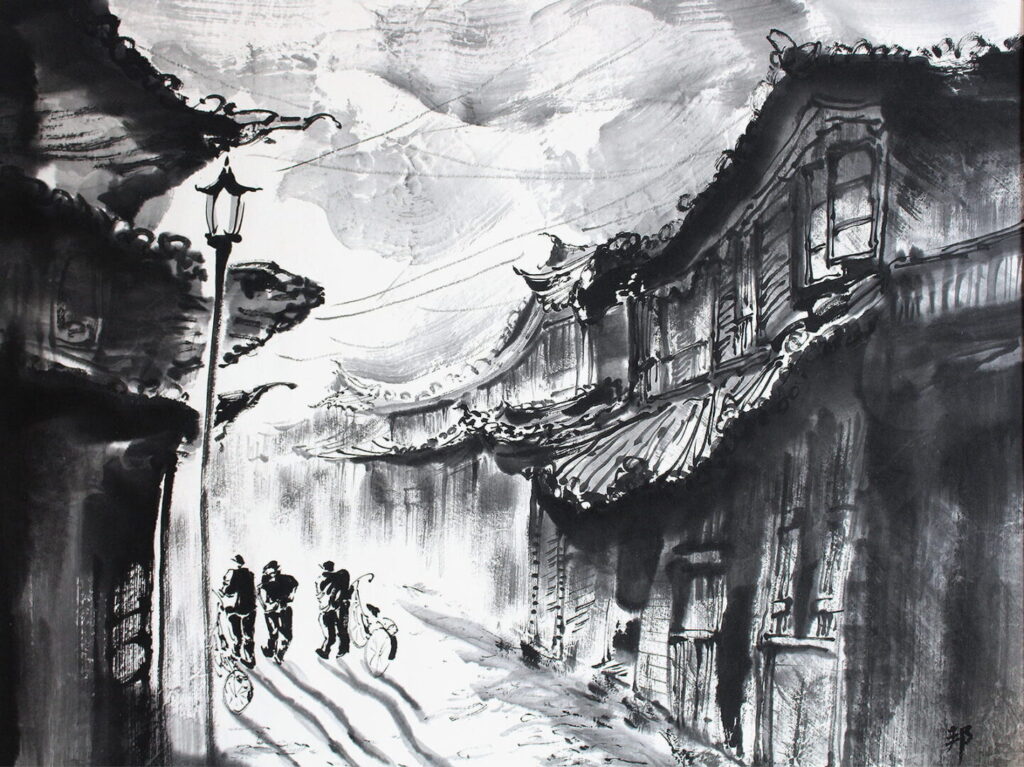1993年 | 馬驍水墨画会入会以来、馬驍先生、王荻地先生に師事し水墨画伝統の考え方、筆法を学ぶ |